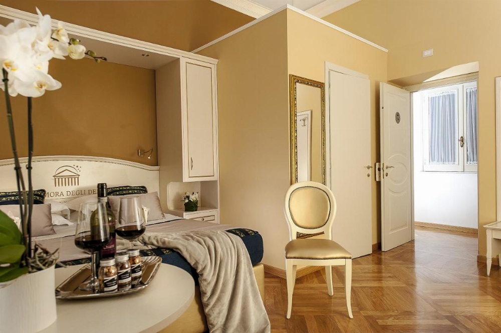 Elegant room with attached bathroom with air conditioning, free Wi-Fi and an LCD TV with free Sky channels. It also features a mini-bar, a Nespresso coffee machine with pods, and an electric kettle with selection of tea and coffee. The bathroom is complete with free toiletries, a hairdryer and slippers.